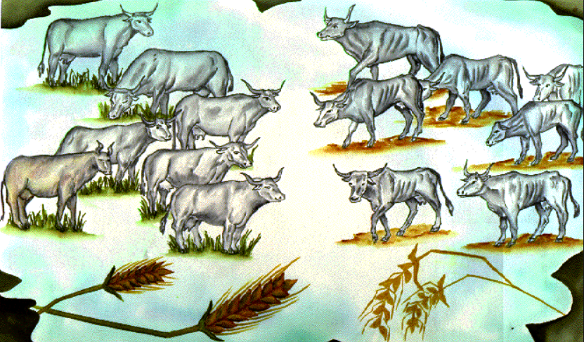 He then interpreted a couple guys dreams while in prison, and those interpretations came true EXACTLY as Joseph said. He asked one guy not to forget him when he was released. Eventually, the ruler of the land, who had thrown him in prison in the first place, had some troubling dreams and one of his helpers used to be in prison with Joseph – He told his boss about Joseph and how good he was at interpreting dreams. Joseph was in prison for about four years total (from what I can tell) when the king called upon him to interpret his dreams.