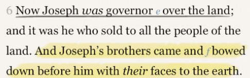 Now, Josephs father and brothers got hungry, his father sent some of the brothers on to Egypt where he has heard there was plenty still. They were told to go and buy some food and bring back. They did what their father told them and ended up bowing down before the overseer of the grain – They did not recognize their brother Joseph. Eventually, the truth came out and they reunited the entire family. Over twenty two years had gone by since Joseph saw his family. He forgave his brothers, he loved them.
