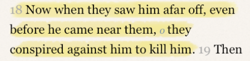 The brothers were going to kill Joseph one day and tell their father a wild animal got him, they threw him in an empty well (Bet that left a mark or two) – But some Egyptians came along and instead they pulled him from the well and sold him as a slave then tore his fancy robe, dipped it in blood, and showed their father. Their father was overcome with grief and the same dirt-bag brothers that sold Joseph tried to console their father… Unbelievable!