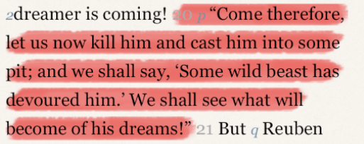 Then, to add insult to injury, Joseph has a dream his other brothers and entire family will one day bow down to him! What? Oh boy!